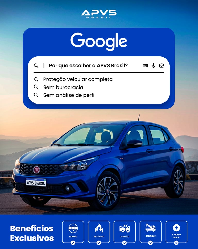 Carro - Com a APVS Brasil, seu veículo conta com uma proteção completa e acessível. Cobertura para roubo e furto, incêndio, colisão, perda total, fenômenos da natureza, rastreador, carro reserva e atendimento 24h, além de isenção de franquia para Roubo, Furto, PT e Terceiros. APVS Brasil segurança e tranquilidade para você seguir em frente.